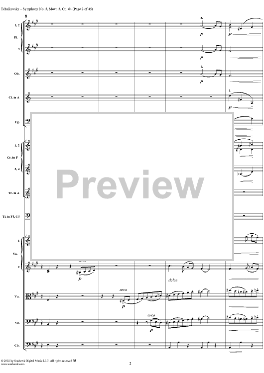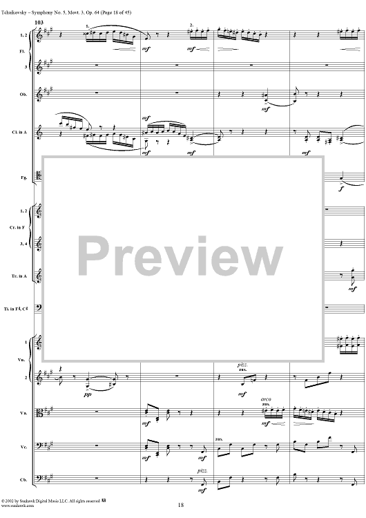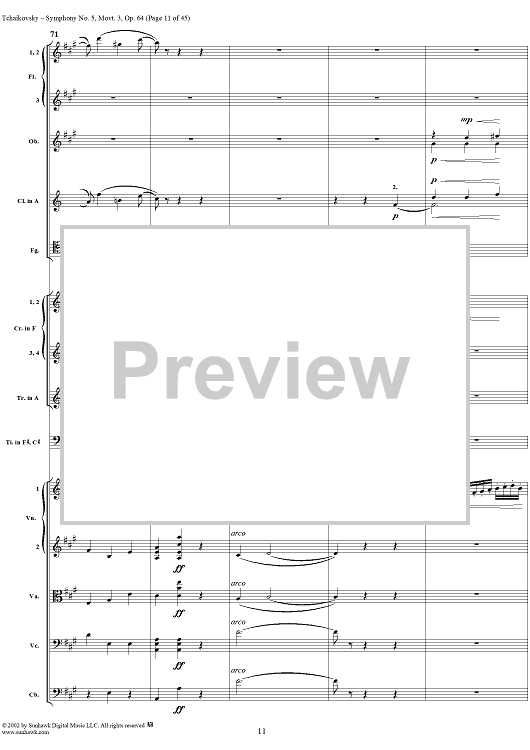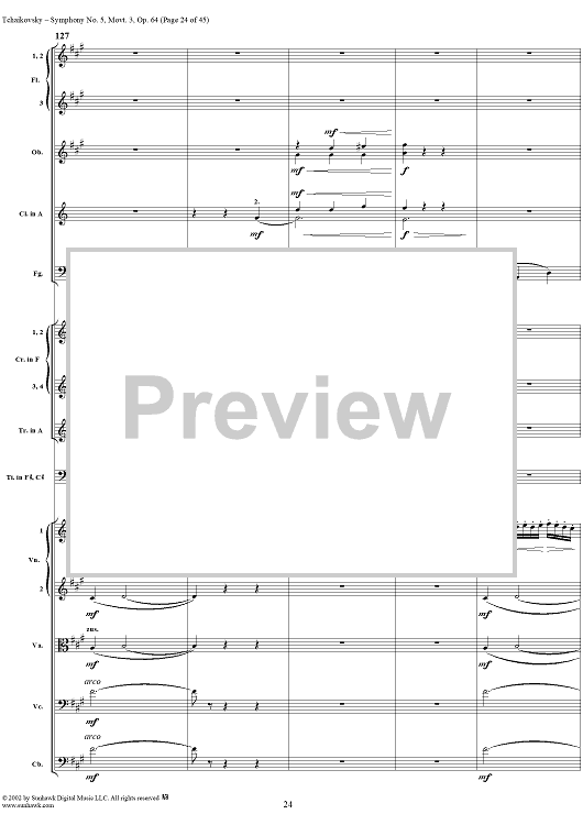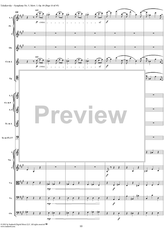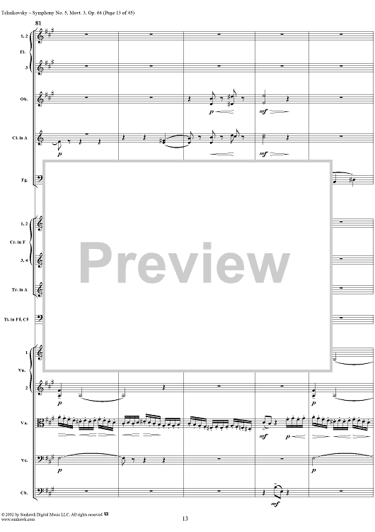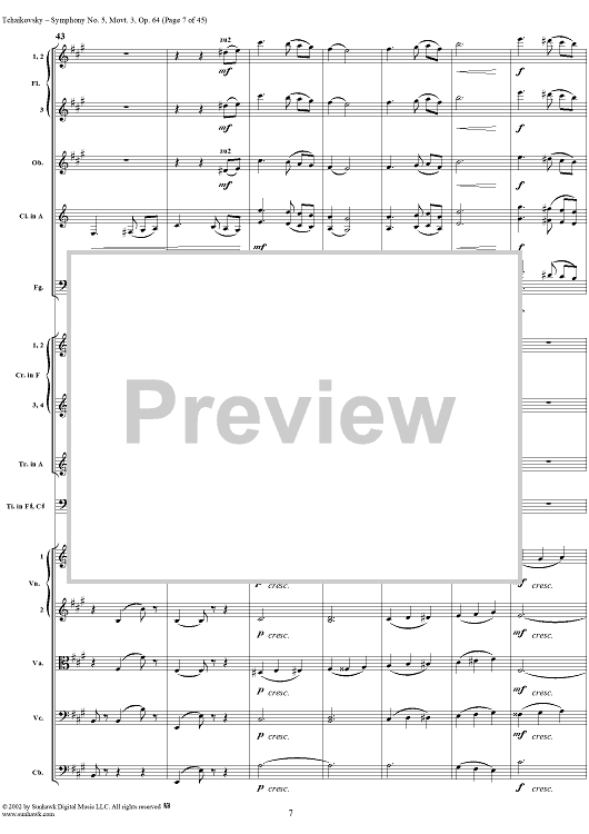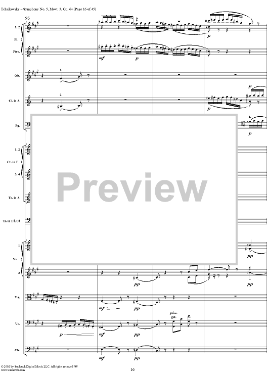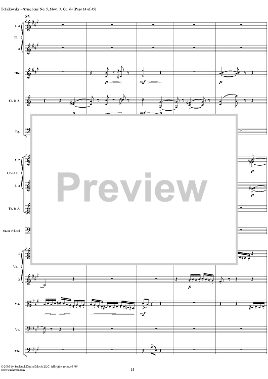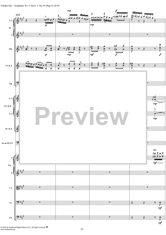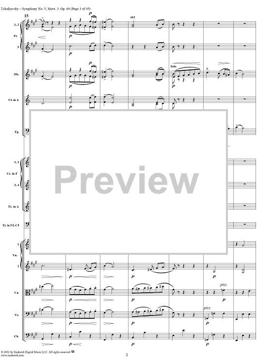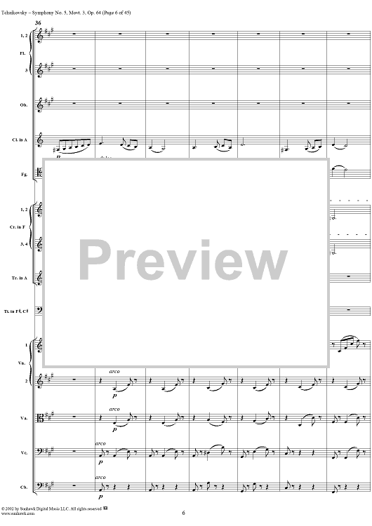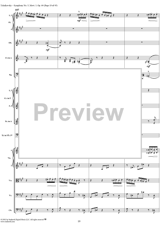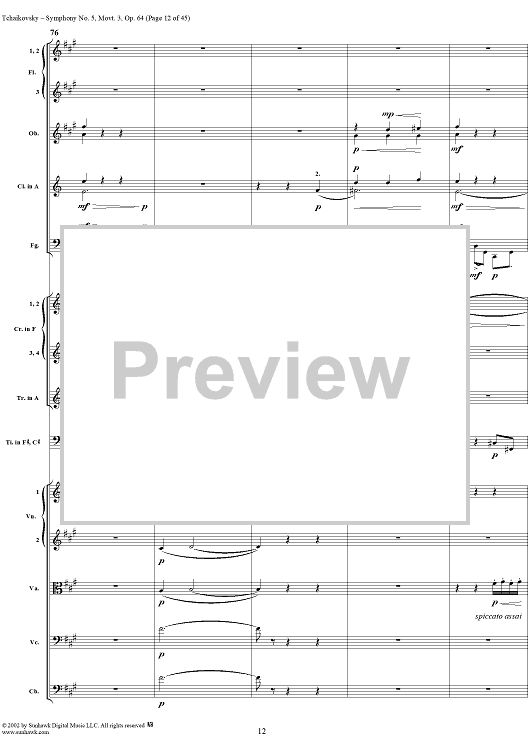 Digital Sheet Music for Symphony No. 5 in E minor (e-moll). Movemen III, Valse Allegro moderato by Peter Ilyich Tchaikovsky scored for Full Score; id:259950