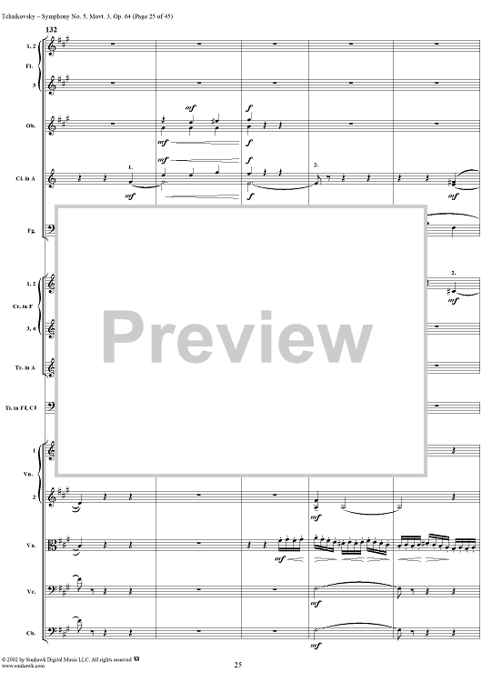 "Symphony No. 5 in E minor (e-moll). Movemen III, Valse Allegro moderato" Sheet Music by Peter Ilyich Tchaikovsky