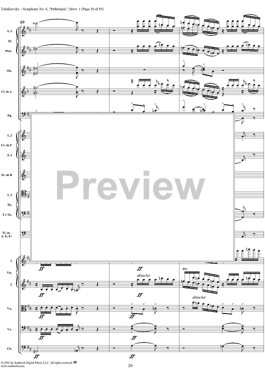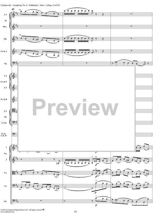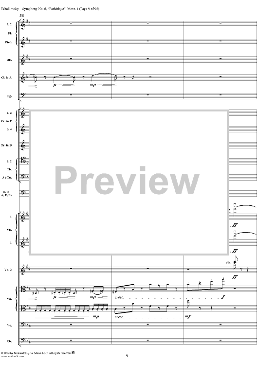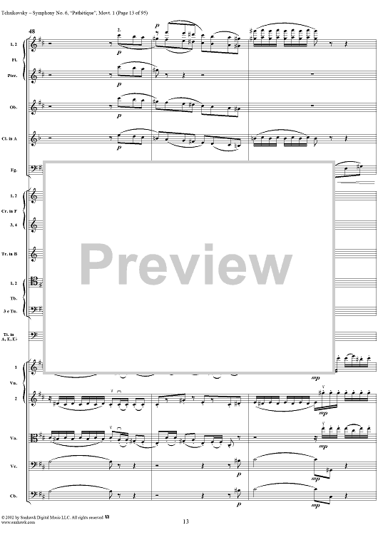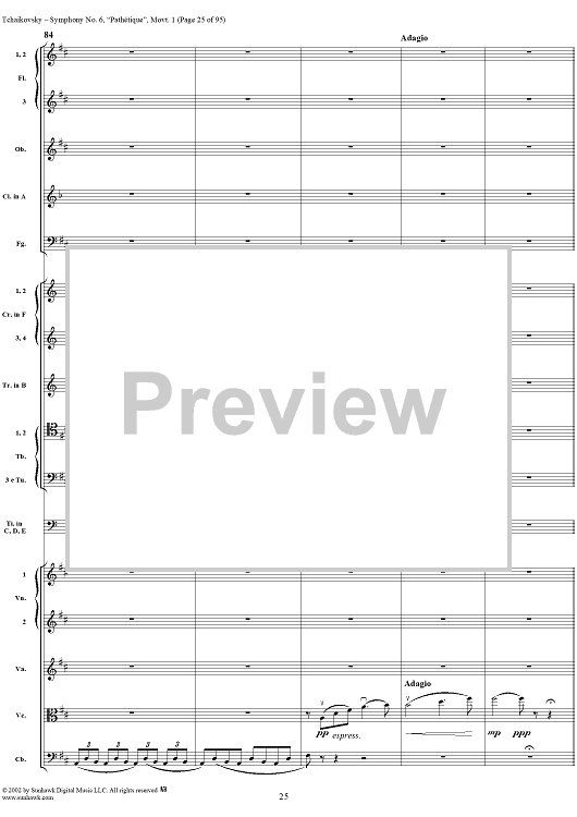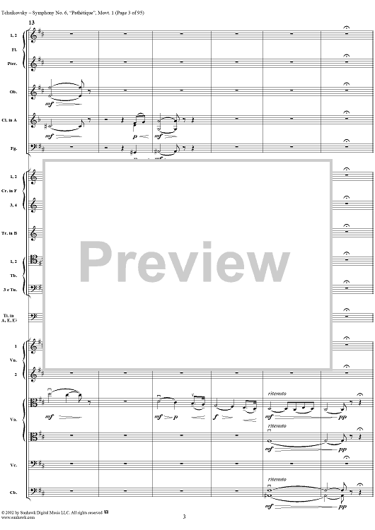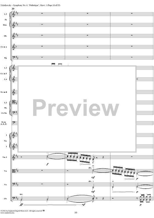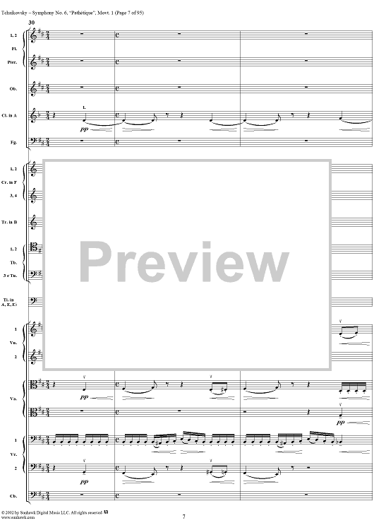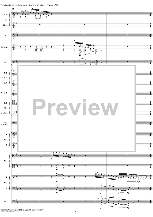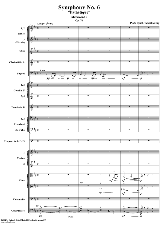 Digital Sheet Music for Symphony No. 6 ''Pathétique'' in B minor (b-moll). Movement I, Adagio-Allegro non troppo by Peter Ilyich Tchaikovsky scored for Full Score; id:259957
