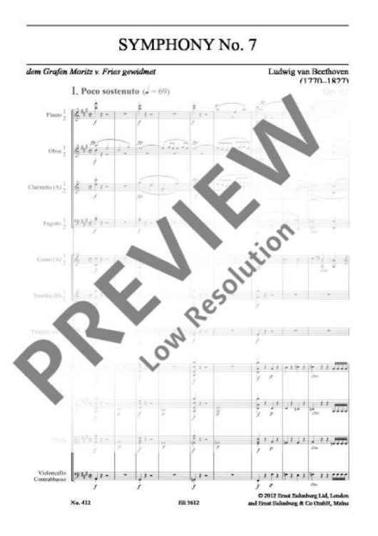 "Symphony No. 7 A major - Full Score" Sheet Music by Ludwig van Beethoven