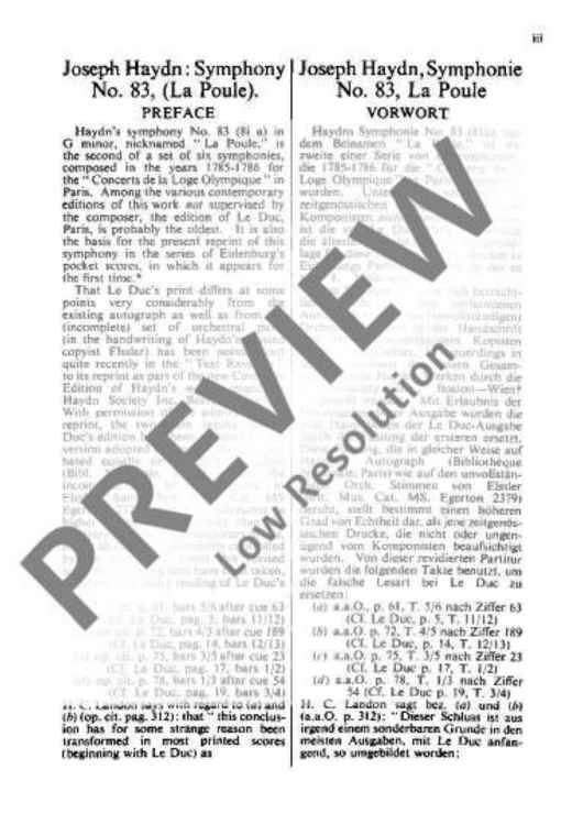 "Symphony No. 83 G minor, "La Poule" in G minor - Full Score" Sheet Music by Joseph Haydn