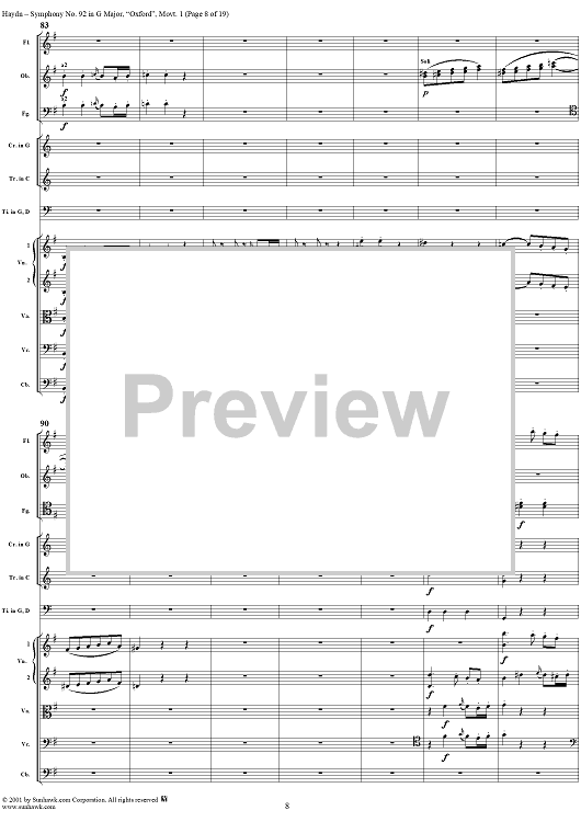 "Symphony No. 92 in G Major, "Oxford" / "Letter Q", Movement 1 HobI/92 - Full Score" Sheet Music by Franz Joseph Haydn