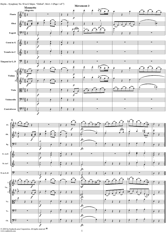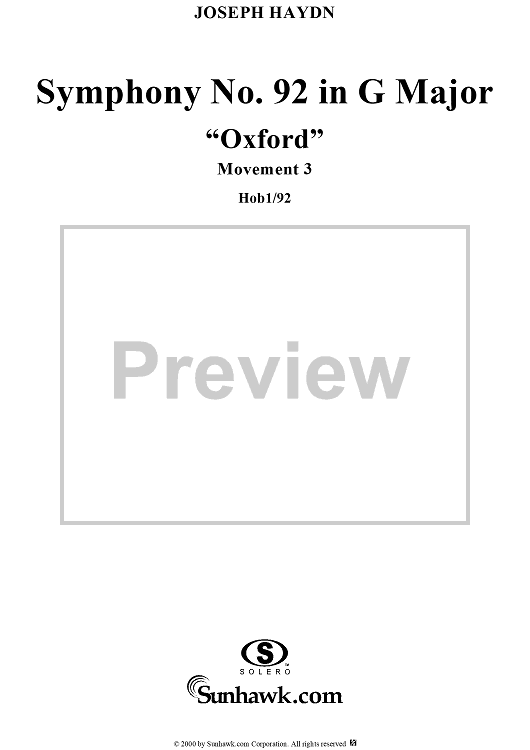 "Symphony No. 92 in G Major, "Oxford" / "Letter Q", Movement 3 HobI/92 - Full Score" Sheet Music by Franz Joseph Haydn