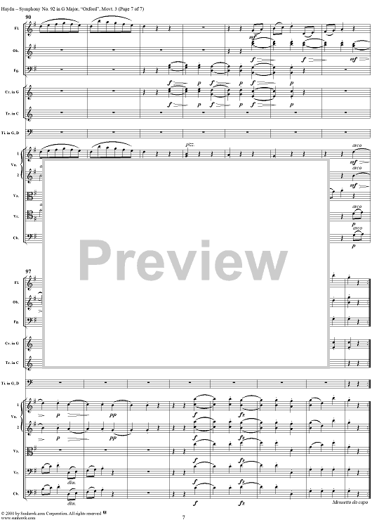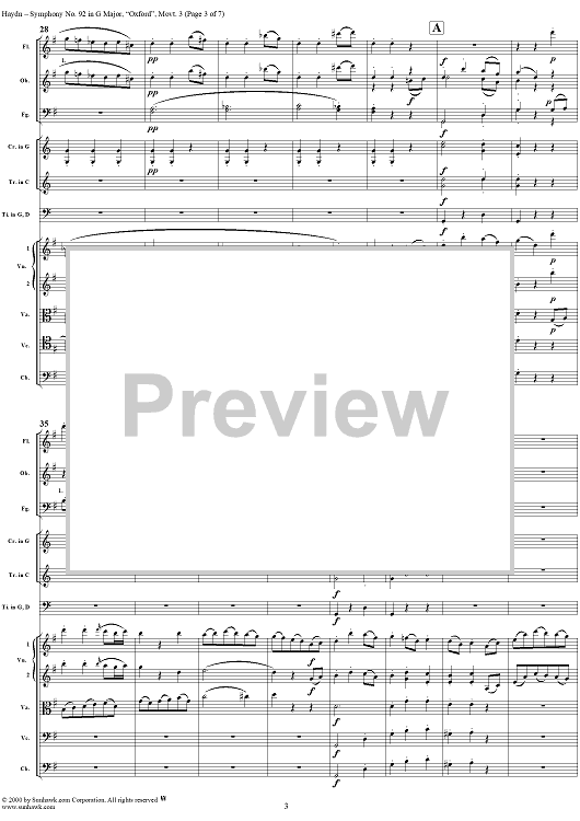Digital Sheet Music for Symphony No. 92 in G Major, "Oxford" / "Letter Q", Movement 3 HobI/92 - Full Score by Franz Joseph Haydn scored for Orchestra; id:265923