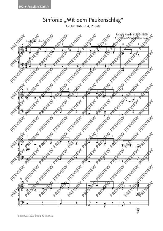 Digital Sheet Music for Symphony "Surprise" in G major by Joseph Haydn, Hans-Guenter Heumann scored for Piano; id:483287