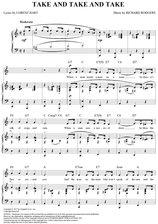 Digital Sheet Music for Take and Take and Take by Richard Rodgers, Lorenz Hart scored for Piano/Vocal/Chords; id:313997