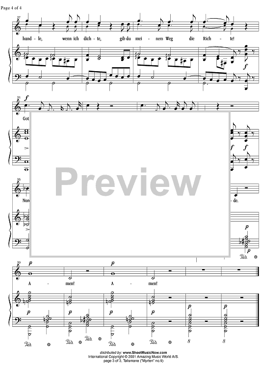 Digital Sheet Music for Talismane Op.25 No. 8 by , Robert Schumann scored for Soprano or Tenor/Piano; id:332461