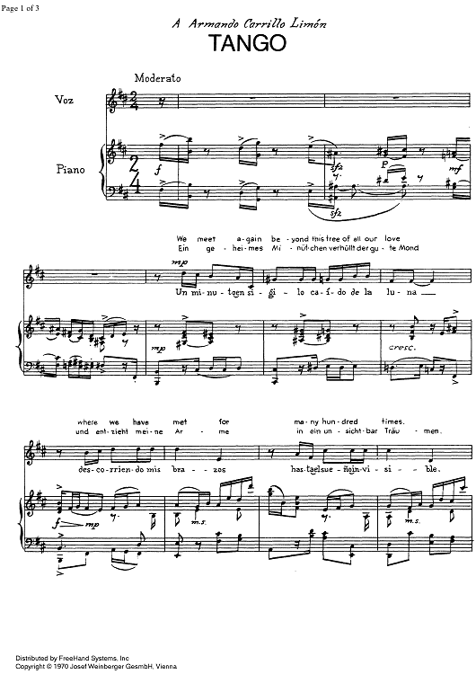 Digital Sheet Music for Tango by , Carlos Jimenez Mabarak scored for Soprano or Tenor/Piano; id:337598