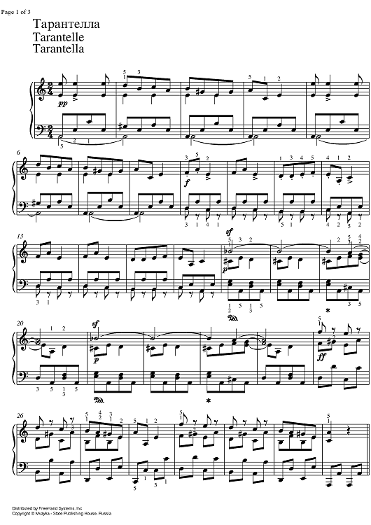 Digital Sheet Music for Tarantella by Mikhail Glinka scored for Piano Solo; id:330353
