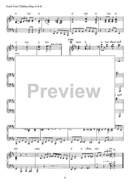 Digital Sheet Music for Teach Your Children by Graham Nash, Brent Edstrom scored for Piano Solo; id:466380