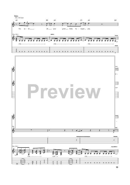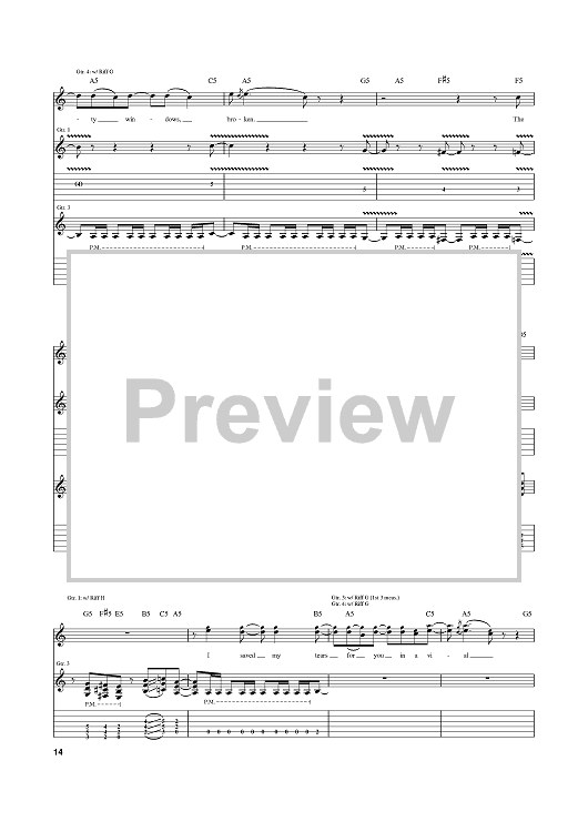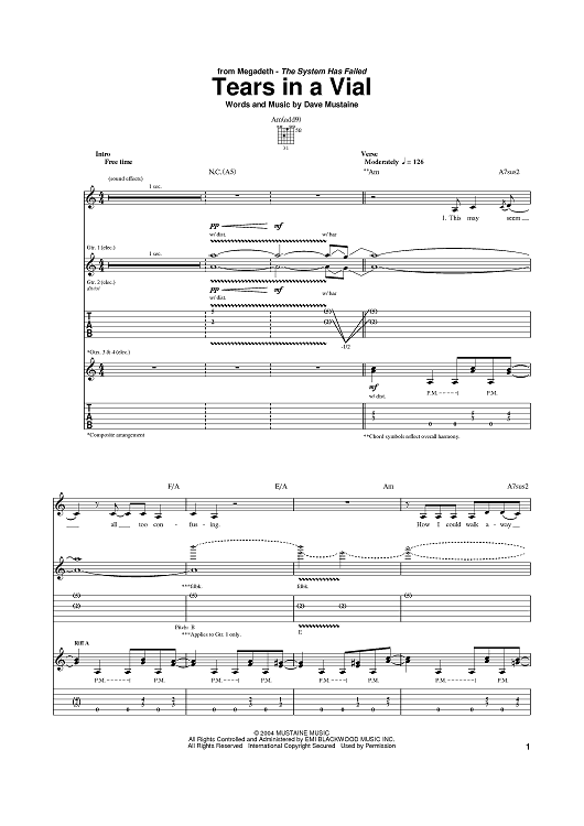 Digital Sheet Music for Tears In A Vial by Megadeth, Dave Mustaine scored for Guitar Tab; id:384895