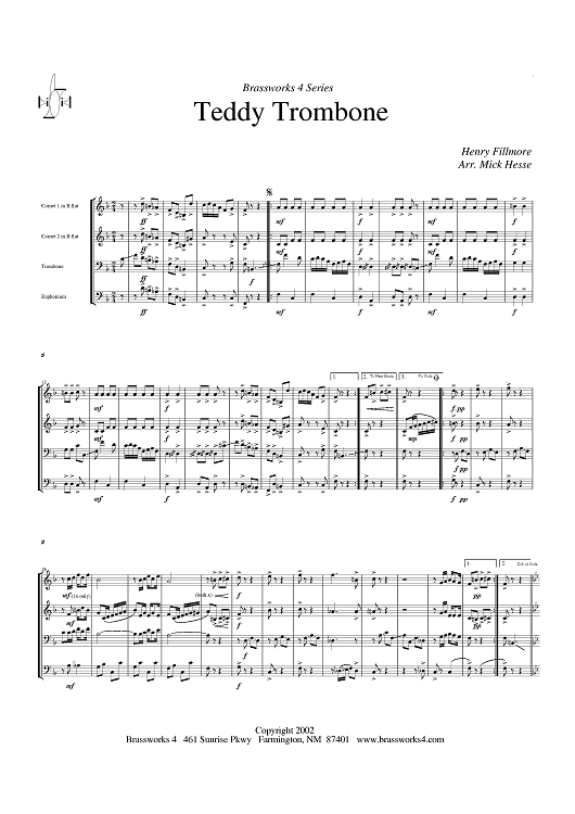 Digital Sheet Music for Teddy Trombone - Score by Henry Fillmore, Mick Hesse scored for Brass Quartet; id:316934