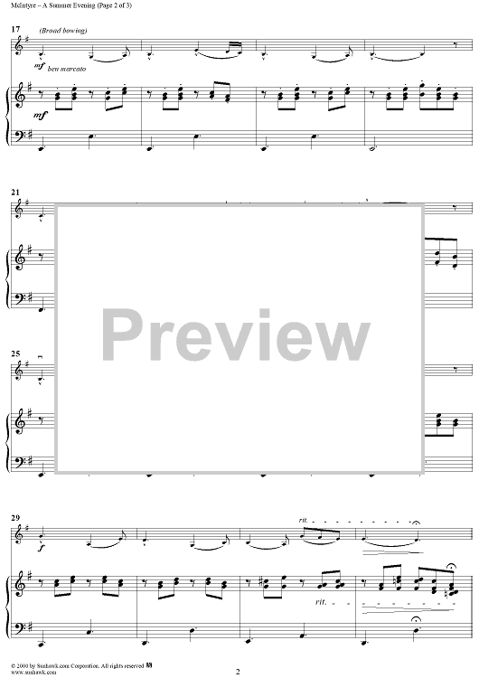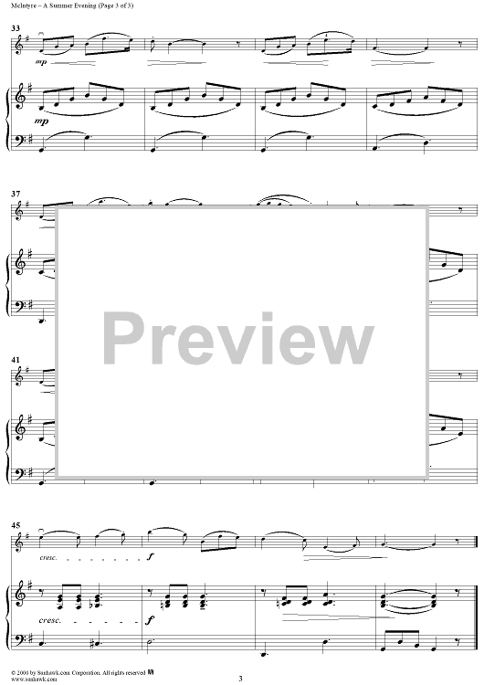 Digital Sheet Music for Ten Melodies from Song-Land, Op. 12, No. 9, A Summer Evening by Edwin Vaile McIntyre scored for Violin/Piano; id:251716