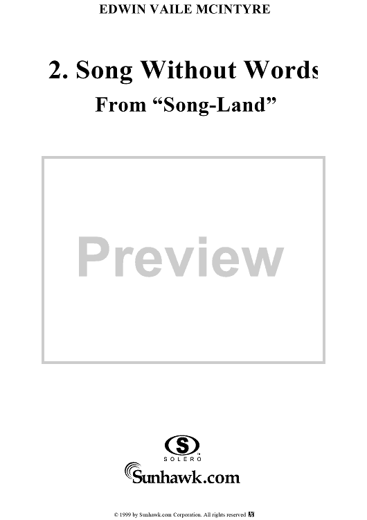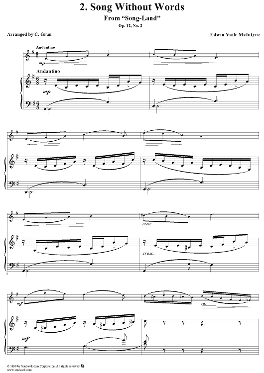 "Ten Melodies from Song-Land, Op12 - 2. Song Without Words" Sheet Music by Edwin Vaile McIntyre