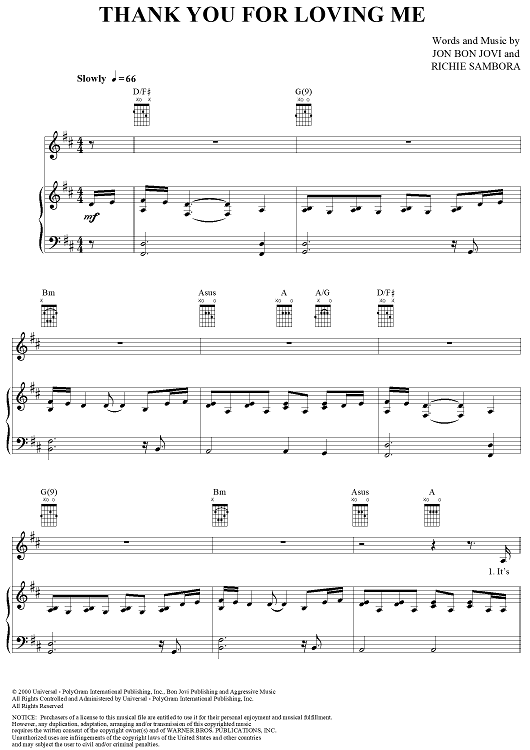 Digital Sheet Music for Thank You For Loving Me by Bon Jovi, Richie Sambora, Jon Bon Jovi scored for Piano/Vocal/Chords; id:286404