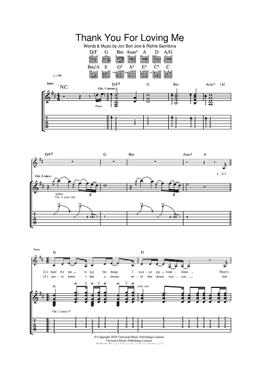 Digital Sheet Music for Thank You For Loving Me by Bon Jovi, Richie Sambora, Jon Bon Jovi scored for Guitar Tab; id:393172