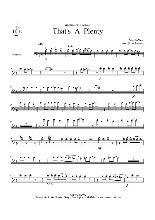 "That's A Plenty - Trombone" Sheet Music by Lew Pollack