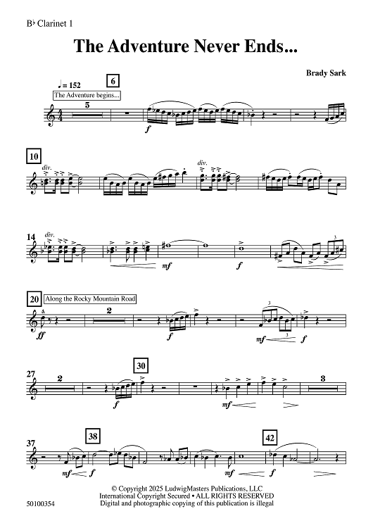 "The Adventure Never Ends - Bb Clarinet 1" Sheet Music by Brady Sark