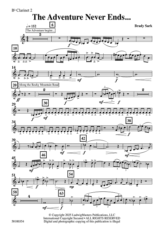 "The Adventure Never Ends - Bb Clarinet 2" Sheet Music by Brady Sark