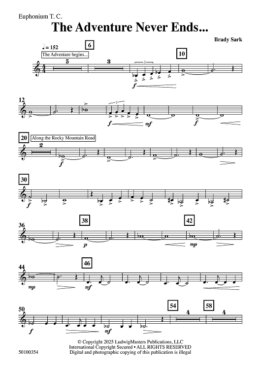 Digital Sheet Music for The Adventure Never Ends - Euphonium TC by Brady Sark scored for Concert Band; id:506984