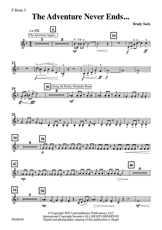 "The Adventure Never Ends - F Horn 3" Sheet Music by Brady Sark