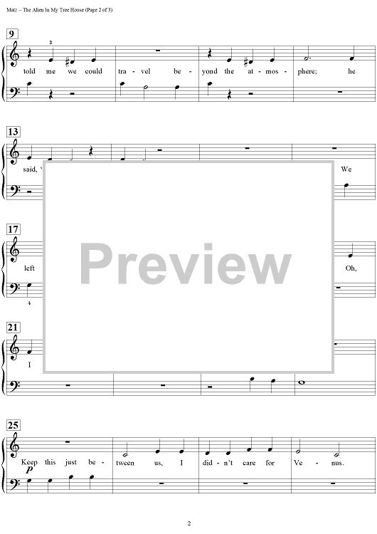 Digital Sheet Music for The Alien in My Tree House by Carol Matz scored for Piano; id:454042
