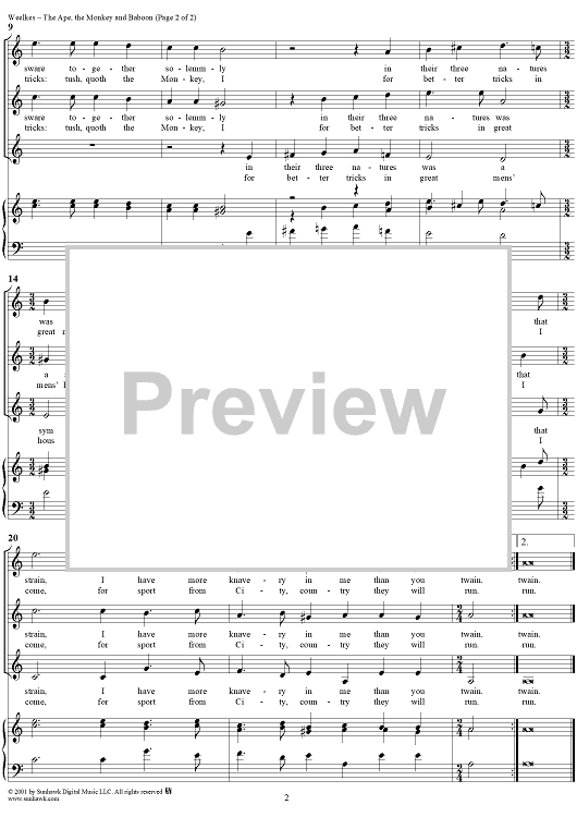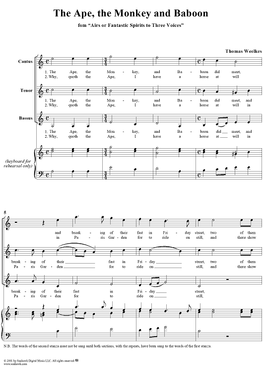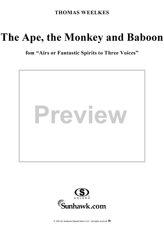 Digital Sheet Music for The Ape, the Monkey and Baboon by Thomas Weelkes scored for Mixed Chorus; id:262199