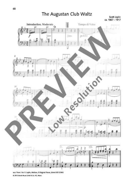 Digital Sheet Music for The Augustan Club Waltz by Scott Joplin scored for Piano; id:481548