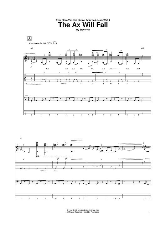 Digital Sheet Music for The Ax Will Fall by Steve Vai scored for Guitar Tab; id:385010