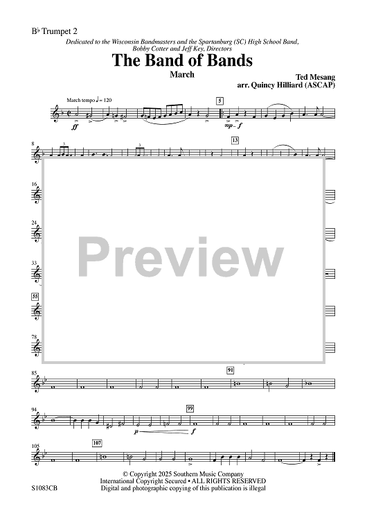 Digital Sheet Music for The Band of Bands - Bb Trumpet 2 by Ted Mesang, Quincy C. Hilliard scored for Concert Band; id:507797