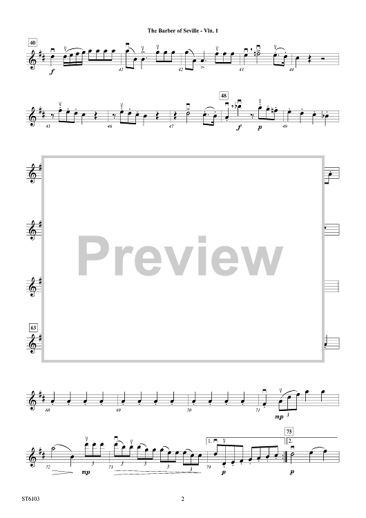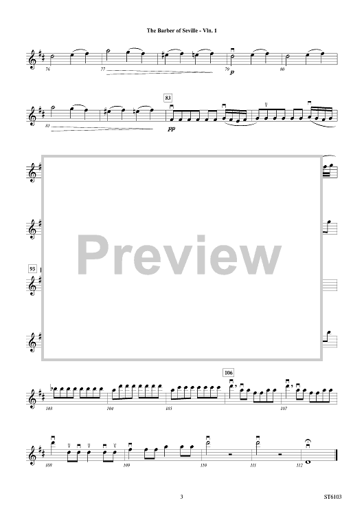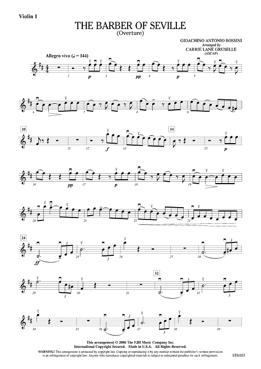 Digital Sheet Music for The Barber of Seville - Violin 1 by Gioachino Rossini, Carrie Lane Gruselle scored for Orchestra; id:505903