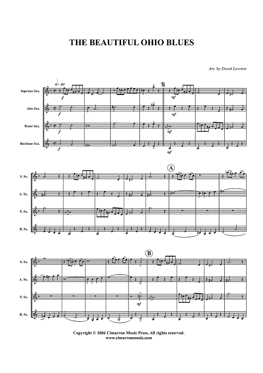 Digital Sheet Music for The Beautiful Ohio Blues - Score by David Lovrien scored for Saxophone Quartet; id:318150