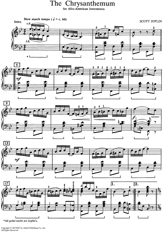 "The Chrysanthemum" Sheet Music by Scott Joplin
