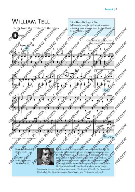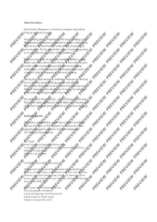This exciting new teaching method, by the renowned piano pedagogue Hans-Günter Heumann is ideal for adults and young people looking to learn the piano from scratch, or for those returning to the piano after a break from playing. Using classical music as a basis for learning, this method introduces interesting, varied and well-known pieces right from the outset. The two method books have been carefully designed to progress in small manageable steps, beginning with simple fingering patterns and exercises, onto some of the most beautiful melodies and pieces from the baroque, classical and romantic eras, such as the Ode to Joy, Für Elise and the Blue Danube Waltz. Leading the student through a range of exercises, repertoire pieces, theory checks, tips on practicing, playing and technique, and composer biographies, the process of learning is made interesting, informed and fun. The four supplementary volumes present further material to help learning at each stage of the students’ development, as well as offering up a wider range of beautiful pieces, for the solo pianist, or piano duet. The method books and duet collections are accompanied by recordings of all pieces performed on a grand piano by a professional concert pianist, as well as some additional accompanying parts, which can be used as play-along tracks.