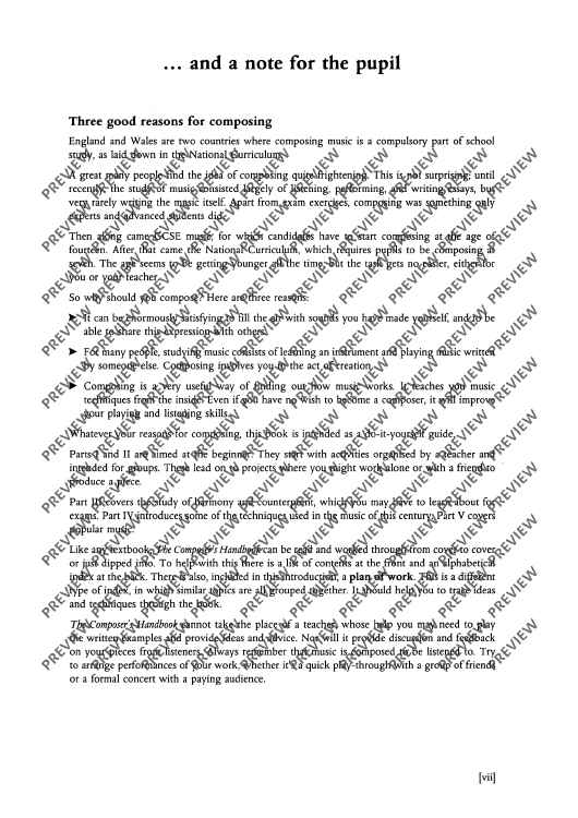 Anyone who can pick up a pencil can draw. Anyone who can sing or play an instrument can compose. "The Composer's Handbook" is a step-by-step guide to the composition of melody, harmony, form and texture and covers styles and techniques from plainchant to minimalism, rock and rave. - for composers aged 11-18 - games and groupwork for the beginner - projects for the more advanced - illustrations and worked examples of complete pieces