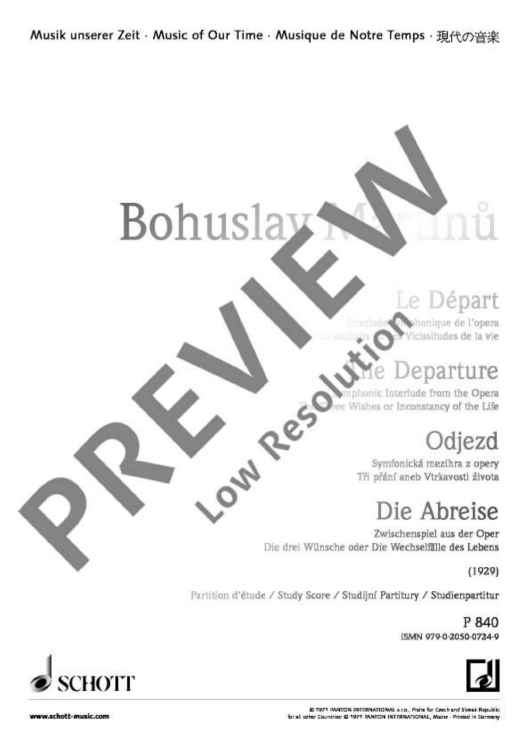 Digital Sheet Music for The Departure - Full Score by Bohuslav Martinu scored for Orchestra; id:476765