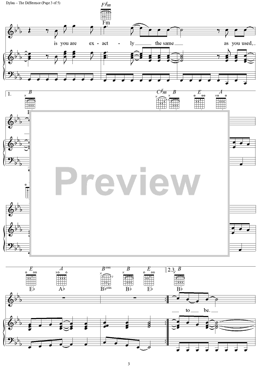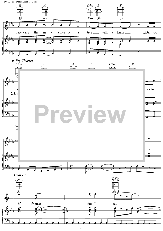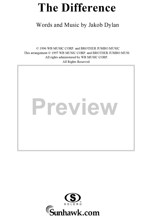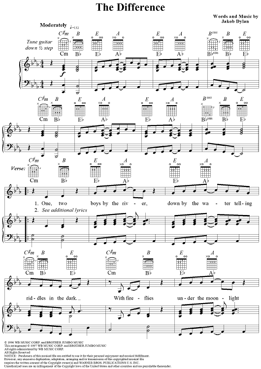 Digital Sheet Music for The Difference by Jakob Dylan, The Wallflowers scored for Piano/Vocal/Chords; id:96030