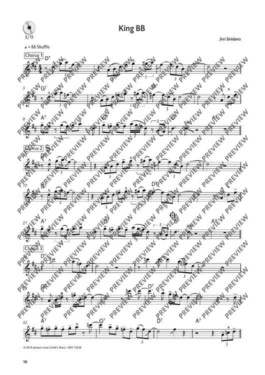 The Essence of the Blues is a new method for beginners and intermediate players who wish to learn the blues. Written by the best-selling author of Jazz Conception and award-winning saxophonist (2017 Downbeat Critic’s Poll) Jim Snidero, this book is the perfect addition to your music lesson. Each book contains 10 solo studies which have been transposed and arranged for the principal jazz instrument. The recordings were performed by top-notch soloists and New York’s best swinging rhythm section: Jim Snidero (alto saxophone), Eric Alexander (tenor saxophone), Jeremy Pelt (trumpet), Steve Davis (trombone), Jamie Baum (flute), Mike LeDonne, Peter Washington, Joe Farnsworth (rhythm section). The Essence Of The Blues is suitable for lessons with young pupils, but also for self-study or as performance pieces for jazz ensembles. Each piece comes with appropriate scale exercises, tips for studying and practicing, suggestions for own improvisations as well as recommended listening.
