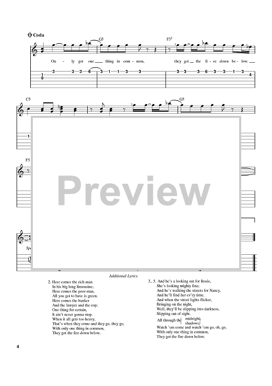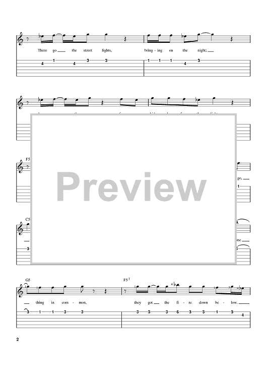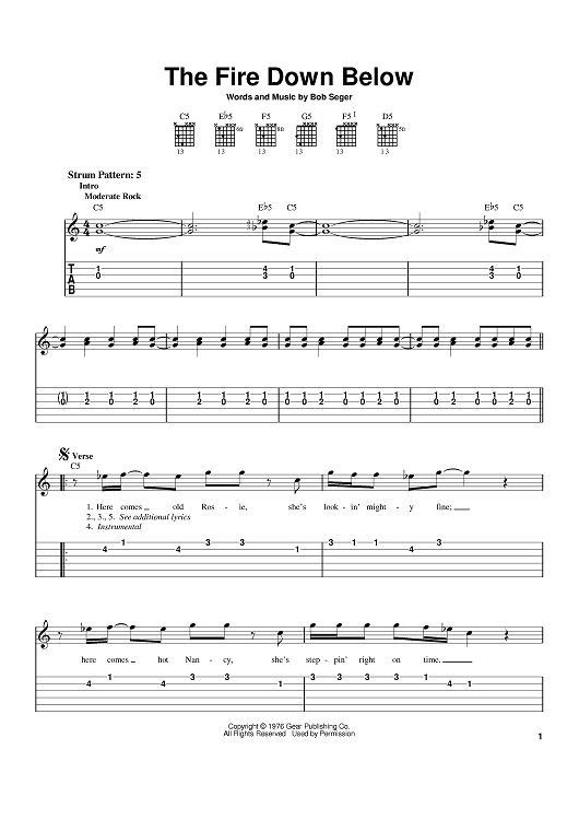 Digital Sheet Music for The Fire Down Below by Bob Seger scored for Easy Guitar Tab; id:372016
