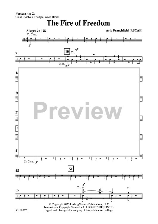 Digital Sheet Music for The Fire of Freedom - Percussion 2 by Aric Branchfield scored for Concert Band; id:509321