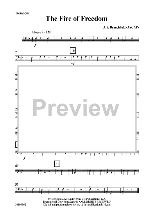 Digital Sheet Music for The Fire of Freedom - Trombone by Aric Branchfield scored for Concert Band; id:509315
