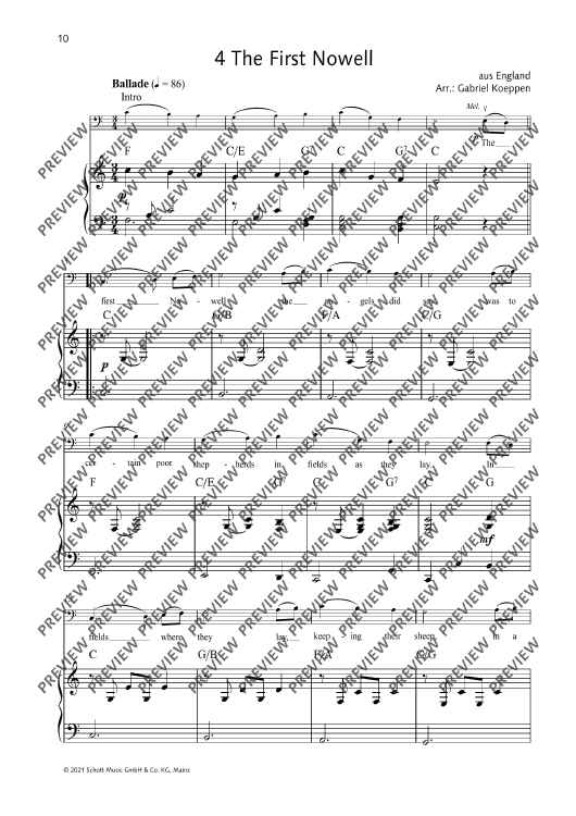 Digital Sheet Music for The First Nowell by Gabriel Koeppen scored for 1-2 Cellos (piano Ad Libitum); id:496556