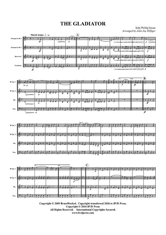 Digital Sheet Music for The Gladiator - Score by John Philip Sousa, John Jay Hilfiger scored for Brass Quartet; id:429429