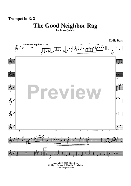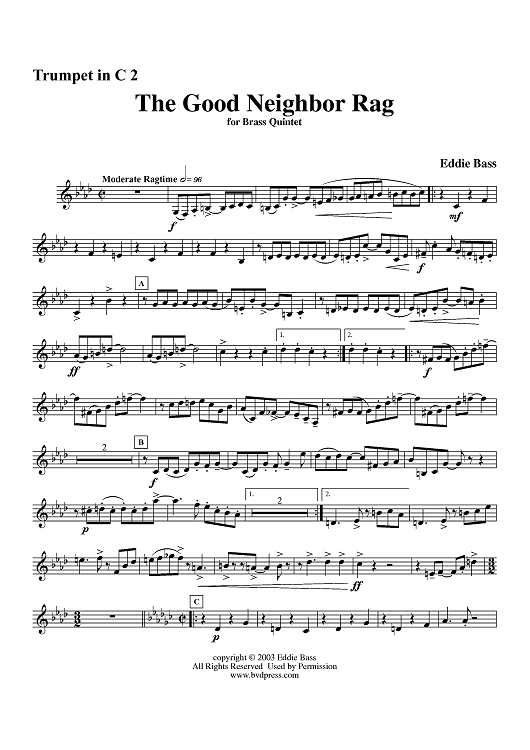 "The Good Neighbor Rag - Trumpet 2" Sheet Music by Eddie Bass
