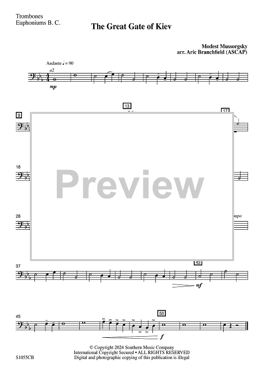 Digital Sheet Music for The Great Gate of Kiev - Trombones/Euphoniums BC by Modest Mussorgsky, Aric Branchfield scored for Concert Band; id:506397
