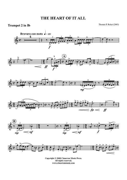 "The Heart of it All - Trumpet 2 in B-flat" Sheet Music by Thomas P. Roher