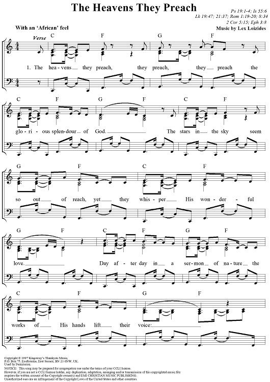 Digital Sheet Music for The Heavens They Preach by Lex Loizides scored for Piano/Vocal/Chords; id:109976