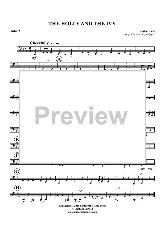 Digital Sheet Music for The Holly and the Ivy - Tuba 2 by John Jay Hilfiger, English Carol scored for Tuba Quartet; id:427264