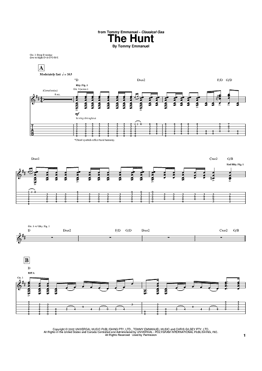 Digital Sheet Music for The Hunt by Tommy Emmanuel scored for Guitar Tab; id:401067