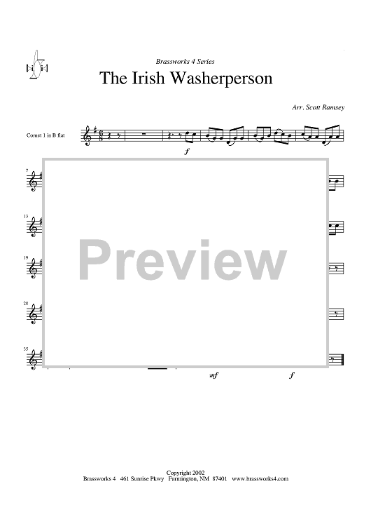Digital Sheet Music for The Irish Washerperson - Cornet 1/Trumpet 1 by Scott A. Ramsey scored for Brass Quartet; id:318836